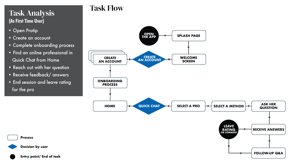 With my beginning rounds of my field research and personas in mind, I was ready to start putting together the first iteration of my app. You can see the evolution of ProTip from rapid prototyping stages using pen and paper to a fully clickable and interactive prototype during the development stages.