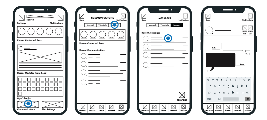 Sending A Text Message On Mid-Fidelity Wireframes, Created Using Adobe Illustrator