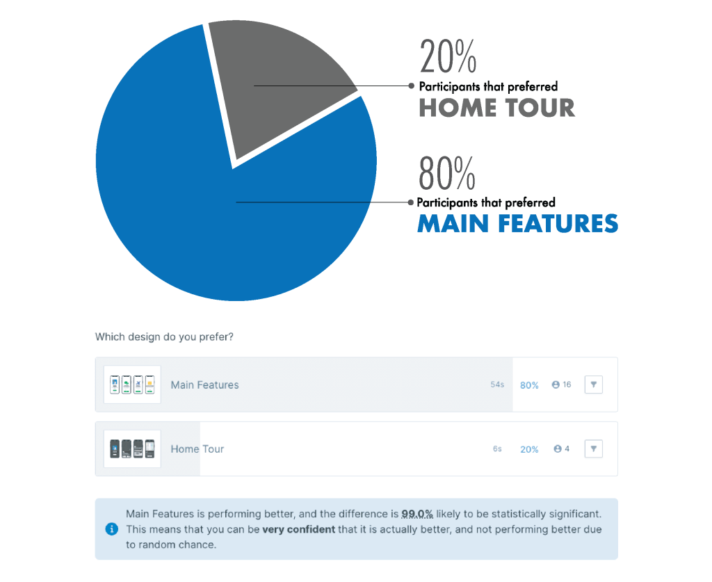 I wasn’t sure which style of onboarding process works better for my app, so I used usabilityhub.com to conduct a test for my users. I created two sets images featuring my two deferent Onboarding processes. These two sets feature some different wording, grammar and visuals in places, but at the core the achieve the same goal. I asked them to select and option, and as I follow-up I proposed the question “Why did you choose this style of onboarding process?”.