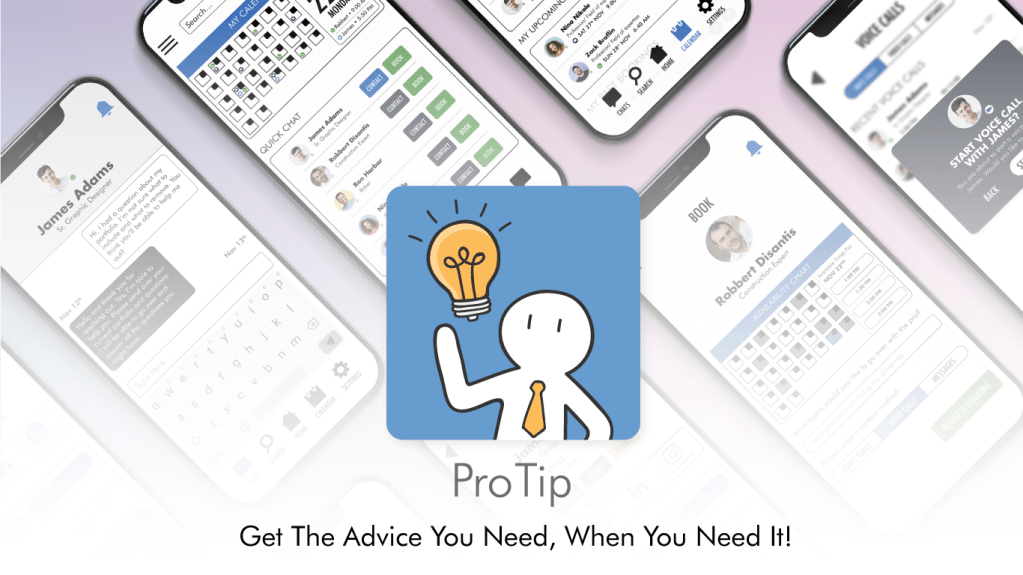 ProTip is a developing mobile application that focuses on putting users who seek professional advice (in nearly every industry!) in touch with people who can help them. These industry professionals will be compensated accordingly to a tier-based system for their time and experience.