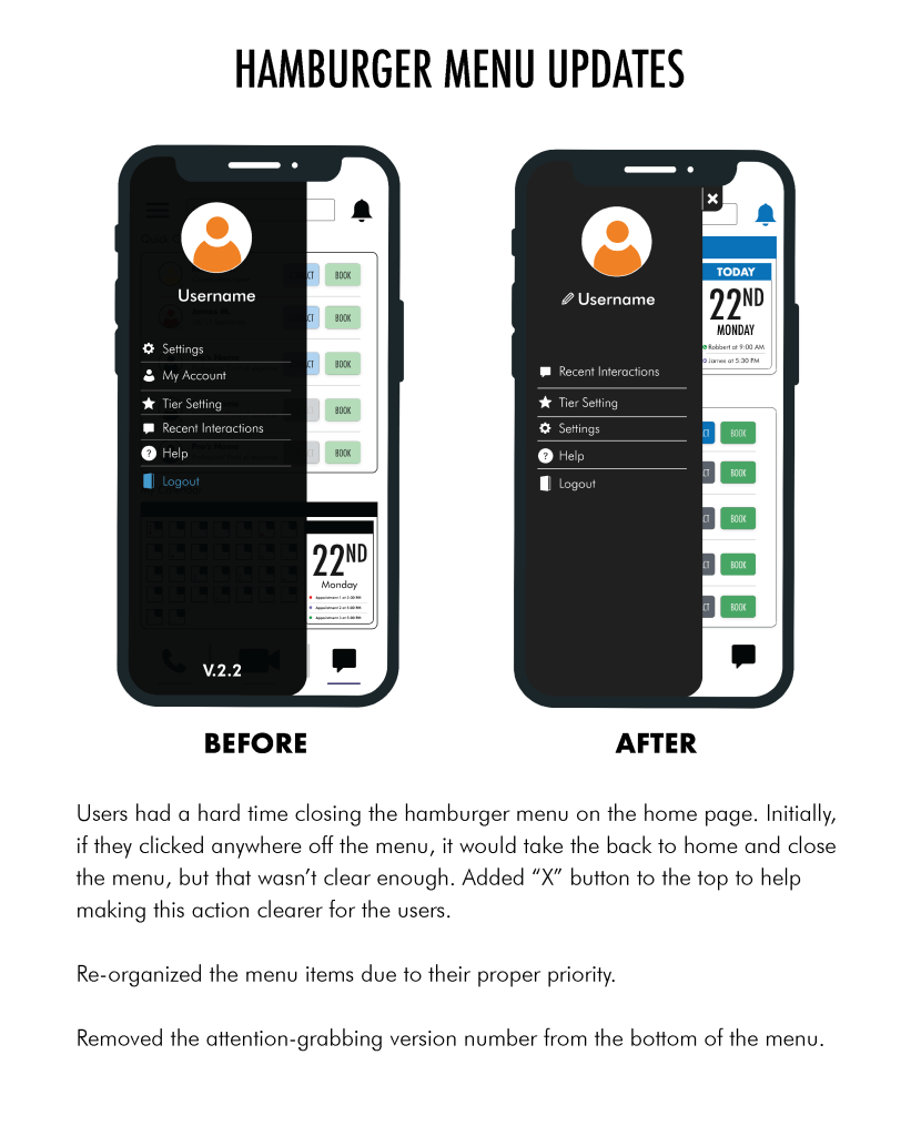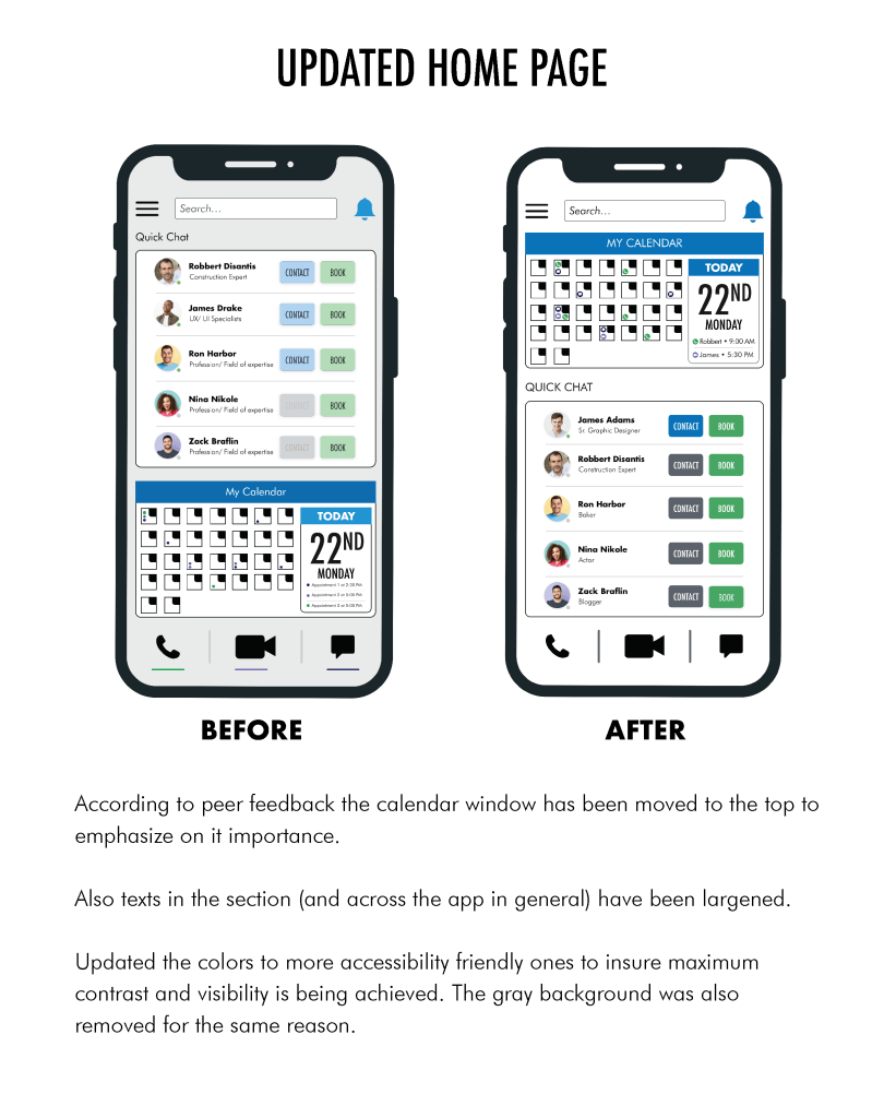 I played many parts during the development cycle of this project, but the most challenging and learning section was receiving feedback on the various states of my prototype from my user testing sessions and trying with to come up with ways to fix the highlighted issues. Issues such as the app resembling social media apps too much, home page looking too busy, confusing navigation and general feedback on reorganizing the layout and UI. The following are a few examples of highlighted issues and how I fixed them to curate a more user friendly interface.