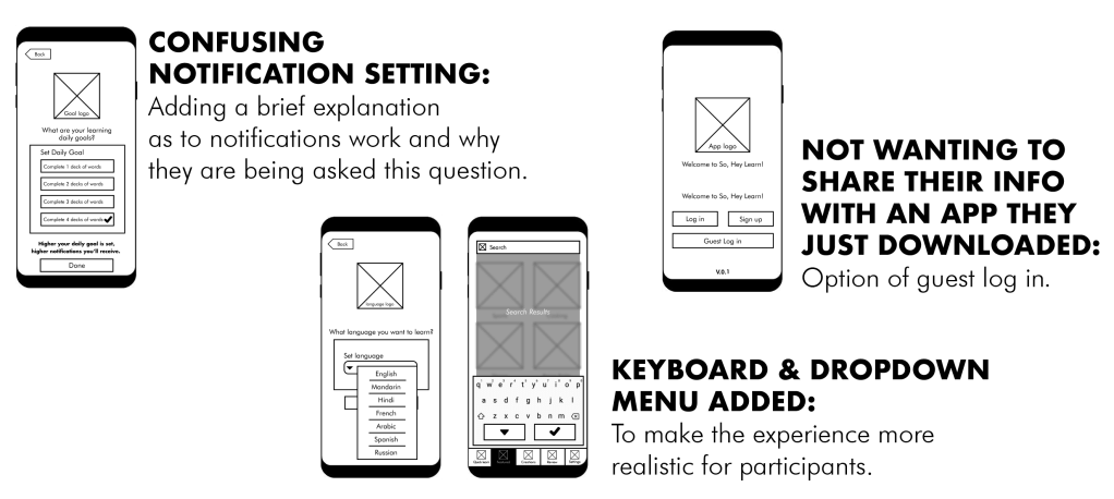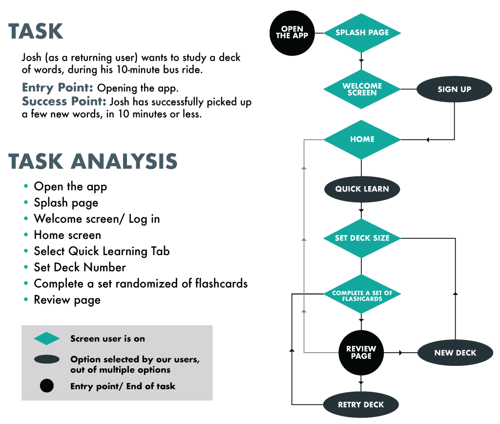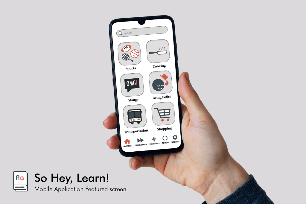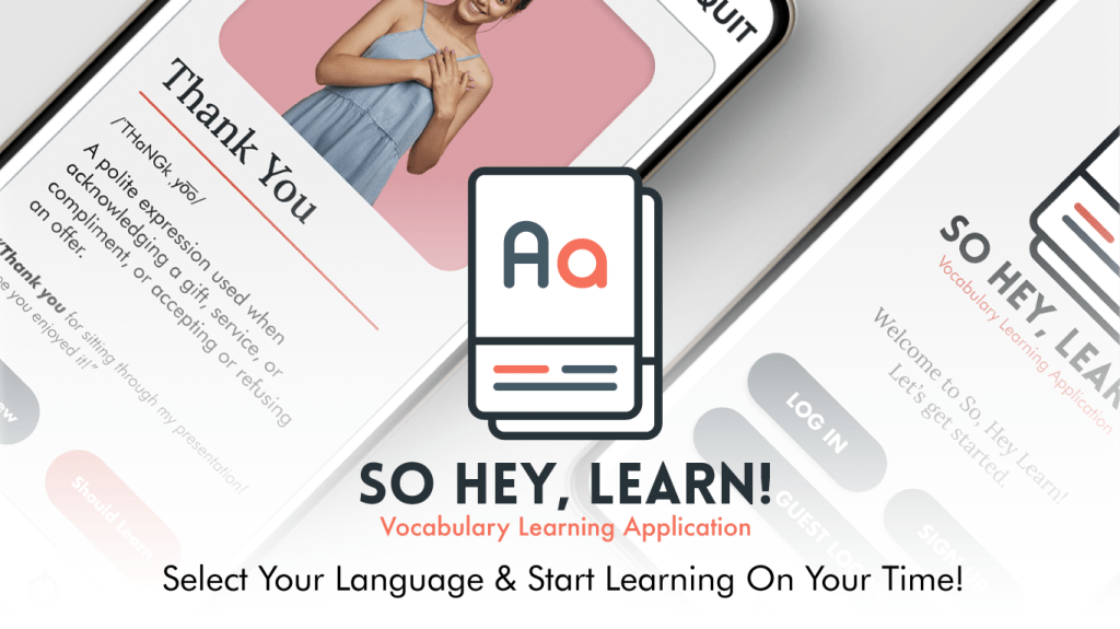I performed my usability test in person and had my participants test key features of our vocabulary learning flashcard application; So Hey, Learn! Features such as quick learn, featured (Home Page) and settings, plus the signing up process. I gave them free reign to roam and play around to see if they can spot any issues