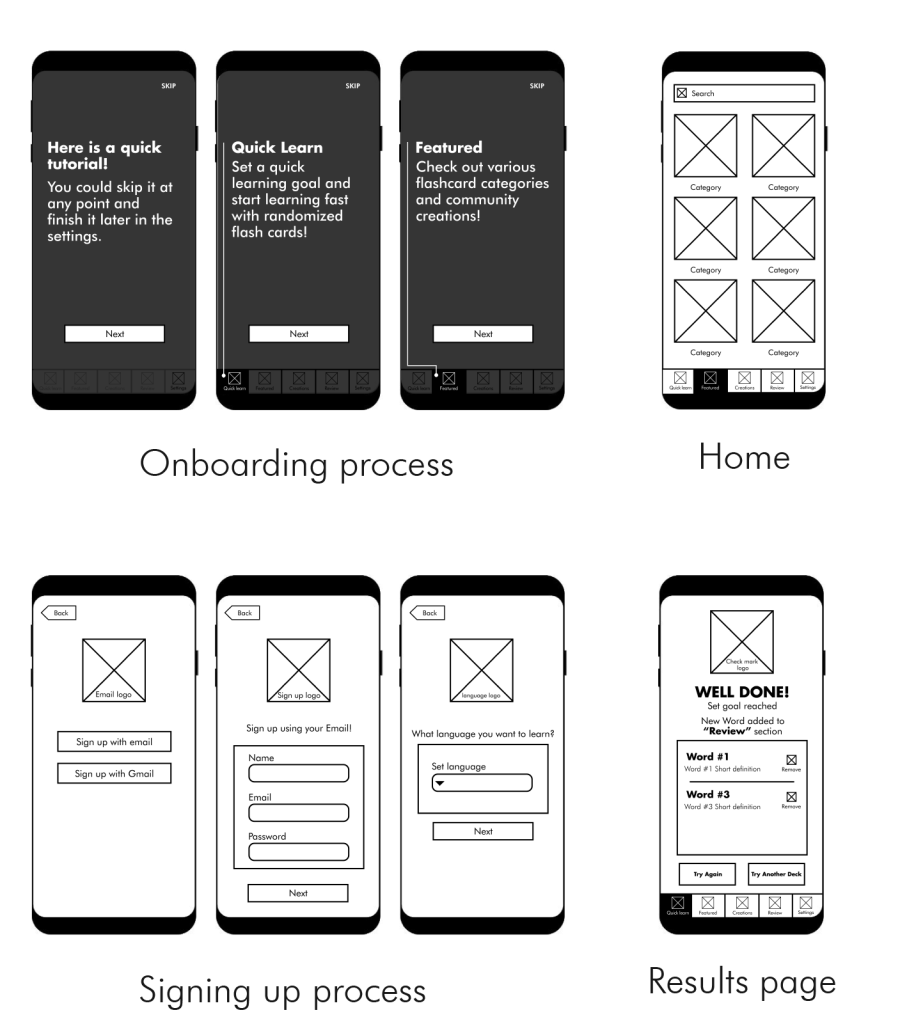 For this case study, I was tasked with creating the wireframes and a prototype for a language learning flash card mobile application. I created the wireframes for this app and turned the crated assets into a prototype (featuring almost 100 screens) in order to make the usability testing and the development of the project in the later stages as easy and comprehensive as possible.